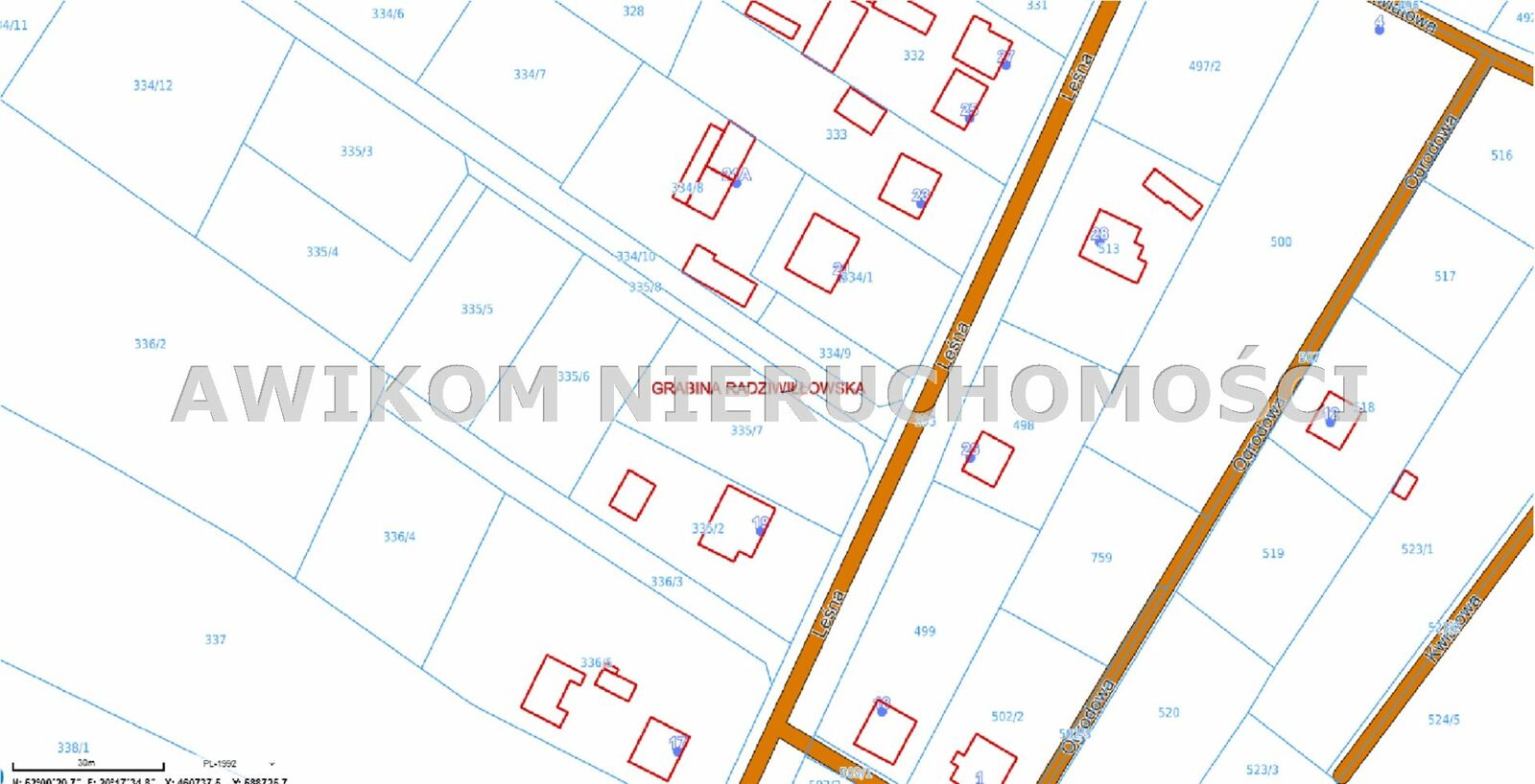 Sprzedam dwie działki budowlaneo powierzchni 1000 m2. Nieruchomość usytuowana jest w miejscowości Grabina Radziwiłłowska 500 metrów od dworca PKP Radziwiłłów Maz przy ul. Leśnej pomiędzy numerami domów 19 i 21. Działki położone są w bliskim sąsiedztwie lasu. Niedaleko do banku, apteki, przychodni lekarskiej, siłowni plenerowej, sklepów. Działka usytuowana jest w terenie gdzie w miejscowym planie zagospodarowania przestrzennego przewidziano przeznaczenie jako grunty do zabudowy mieszkaniowej jednorodzinnej. Dojazd do zapewniony jest bezpośrednio z ul. Leśnej oraz udział w nieruchomości stanowiącej drogę wewnętrzną. Wszystkie media tj. energia elektryczna, woda miejska, kanalizacja znajdują się w ul. Leśnej. Bardzo Polecam.Oferta wysłana z systemu Galactica Virgo